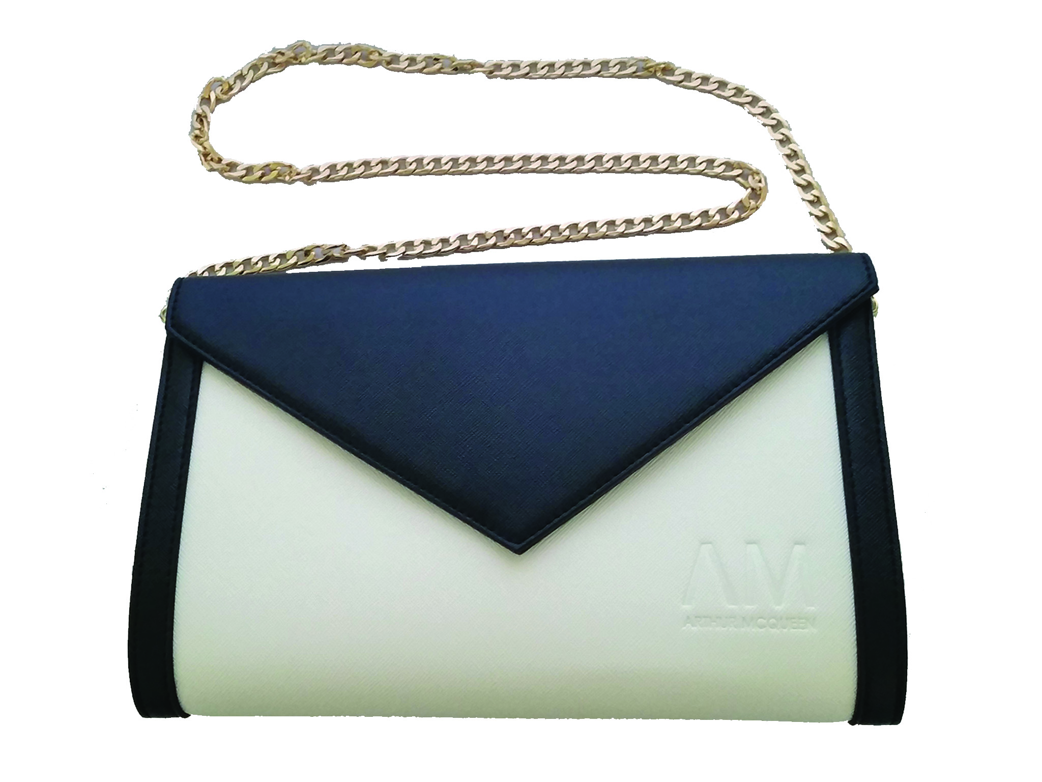 - Cross grain vinyl - Detachable gold chain link strap - Interior zipper pocket and 2 open pockets - Hidden magnetic closure - 11" x 2.5" x 7" - Fully lined interior - Imported
