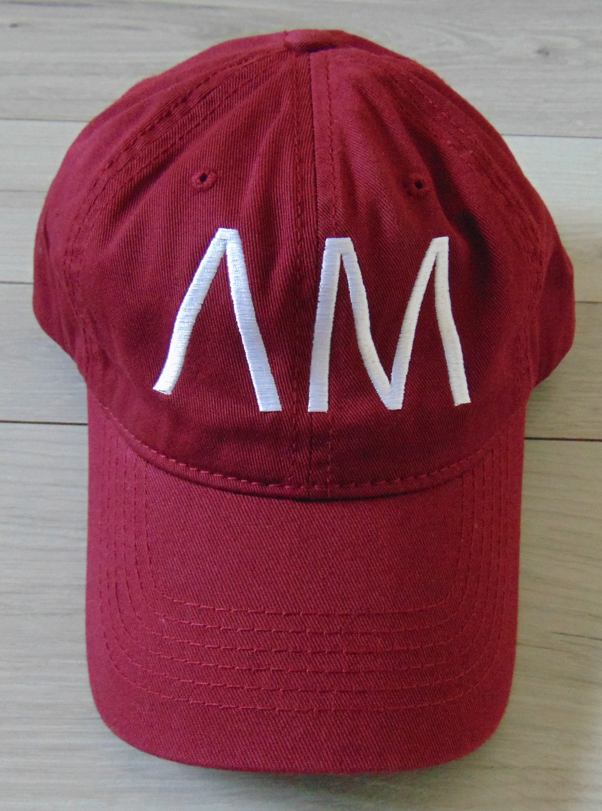 Burgundy dad hat with white embroidered logo